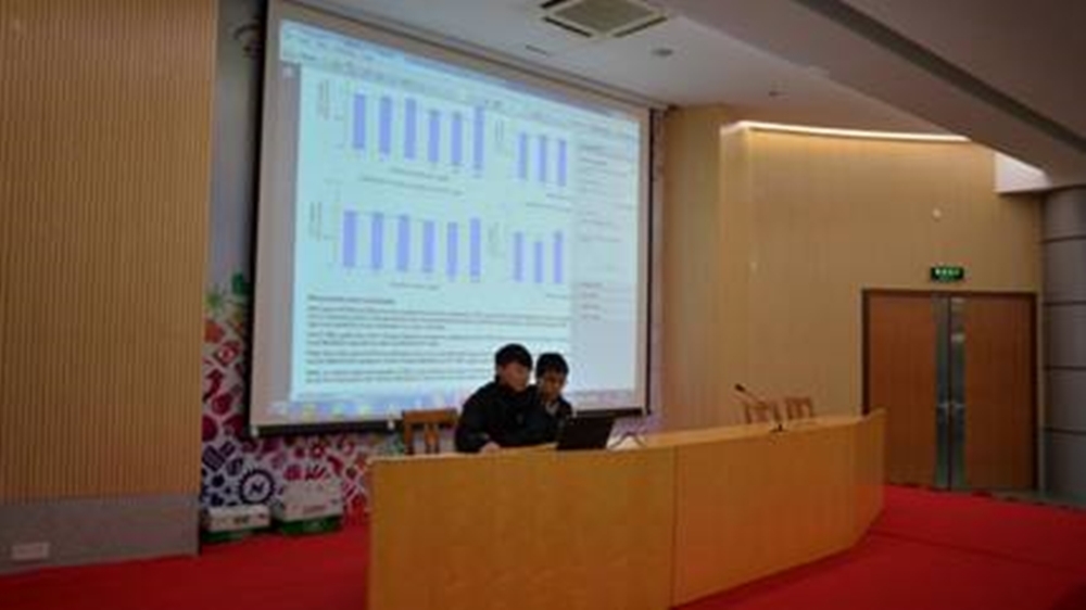 MA Ho-Him (right) and CHOW Pak-Chun (left) were sharing their research findings in a secondary school in Foshan, China.