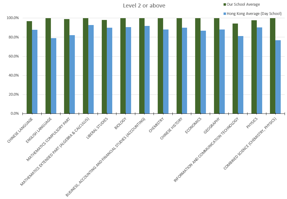 Chinese Language, English Language, Mathematics, Mathematics Extended Part (Algebra & Calculus), Liberal Studies, Biology, BAFS, Chemistry, Chinese History, Economics, Geography, ICT and Physics.