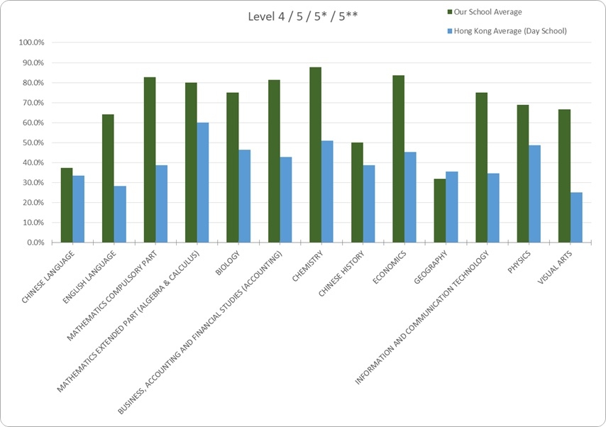 Subjects attaining more 5**/5*/5 than Hong Kong Average: