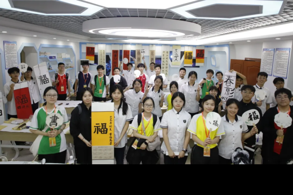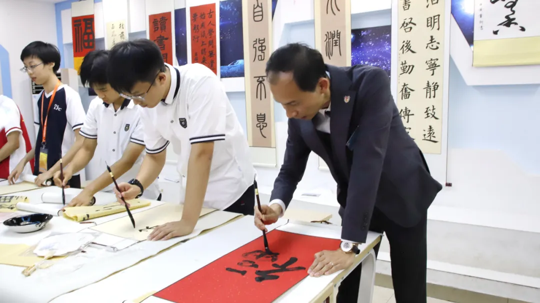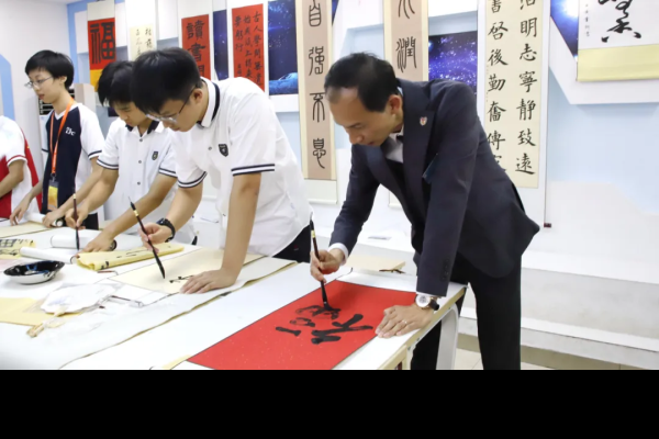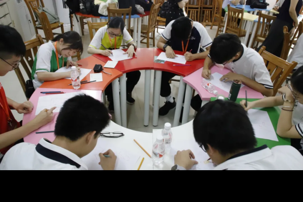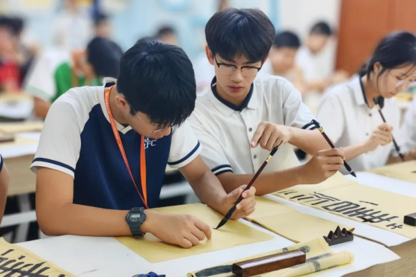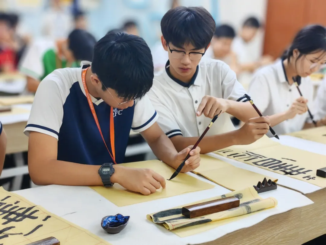 當日,我校師生在第三十三中學度過了一個難忘的上午。第三十三中學學生先為我們介紹了校史長廊,讓我們深入瞭解學校的發展足跡,感受該校的精神傳承,領略水育文化的深厚內涵。在隆重的簽約儀式後,兩校學生一起上心理課堂,分享各自面對的壓力,交流冥想放鬆、運動解壓、音樂療愈等減壓方法,很快熟稔起來。在第二節書法課時,兩校的學生一起練習書寫,交流書法心得,在墨色晕染中傳遞友情,互贈字句。