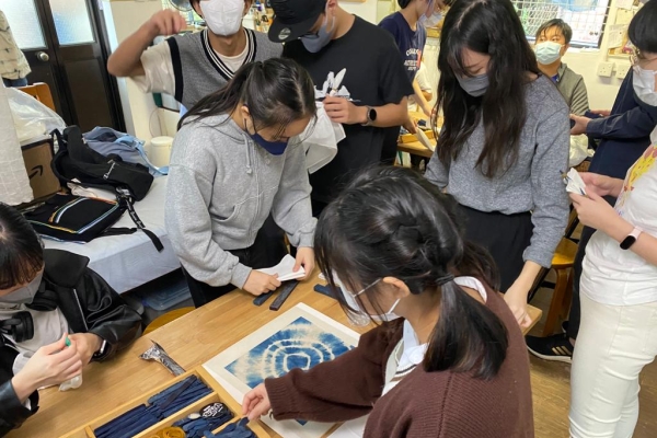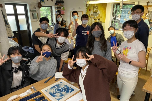 In order to cultivate multiple intelligence, our Visual Arts students joined an indigo-dye workshop on Lantau Island. We have learnt the traditional and natural way of Indigo dyeing, “Ai-zome”. We tied the fabrics into different patterns and applied the solution to cloth and had the cloth aired to repeat oxidation. It was an enjoyable and fun experience.
