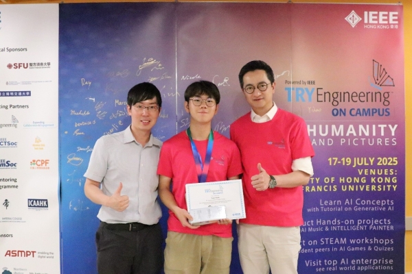 In July, 2025, our student P. H. Yuen participated “TRY Engineering on Campus 2025” organized by Institute of Electrical and Electronics Engineers(IEEE), CityU and St. Francis U. The event aims to promote AI education in Hong Kong. In the camp, students can